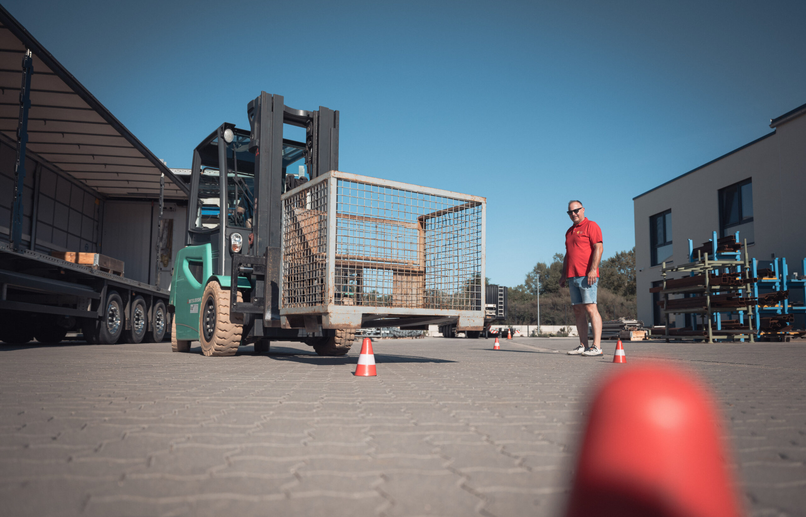 Kombination aus Pflicht-Theorie und realen Fahreinheiten für sofort sichere Bedienung im Arbeitsalltag.