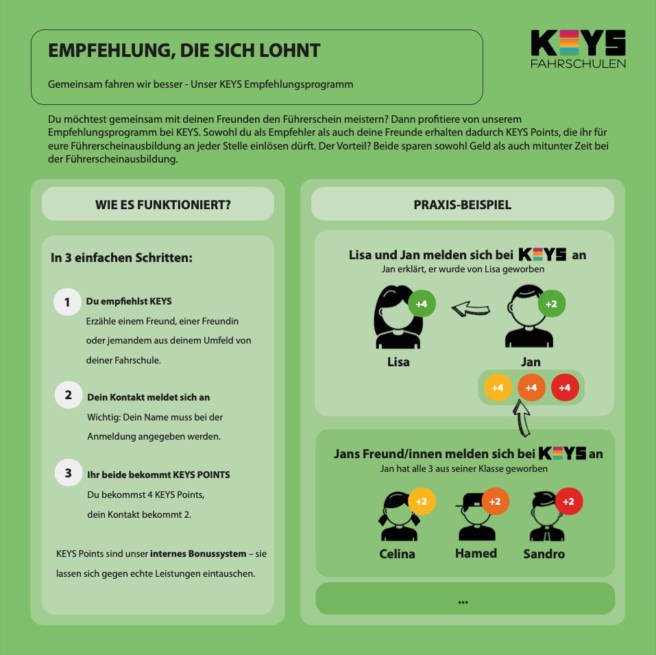 Das KEYS Empfehlungsprogramm belohnt genau das, was in der Fahrausbildung sowieso passiert: