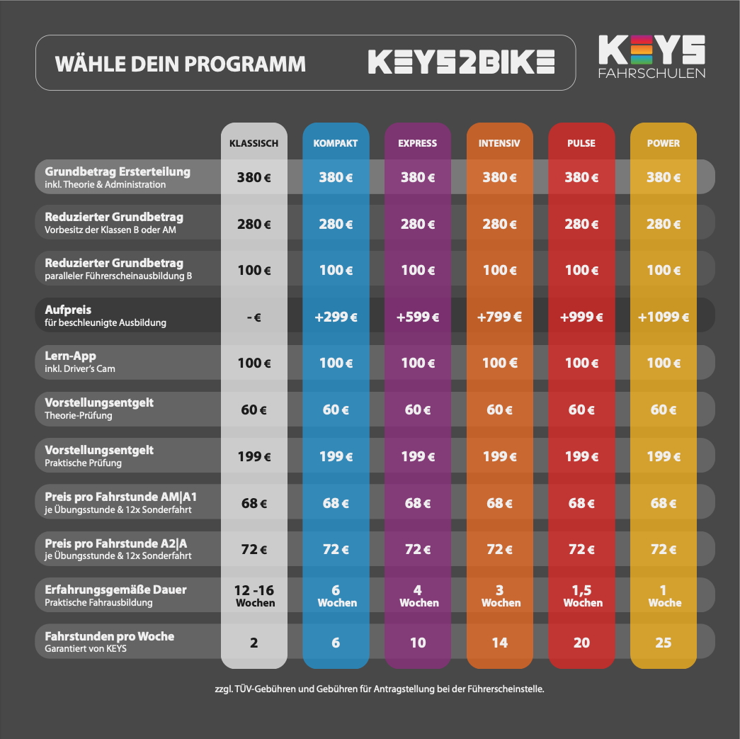 - Welche Führerscheinklasse du machst (z. B. Einsteiger oder Aufbaukurs).